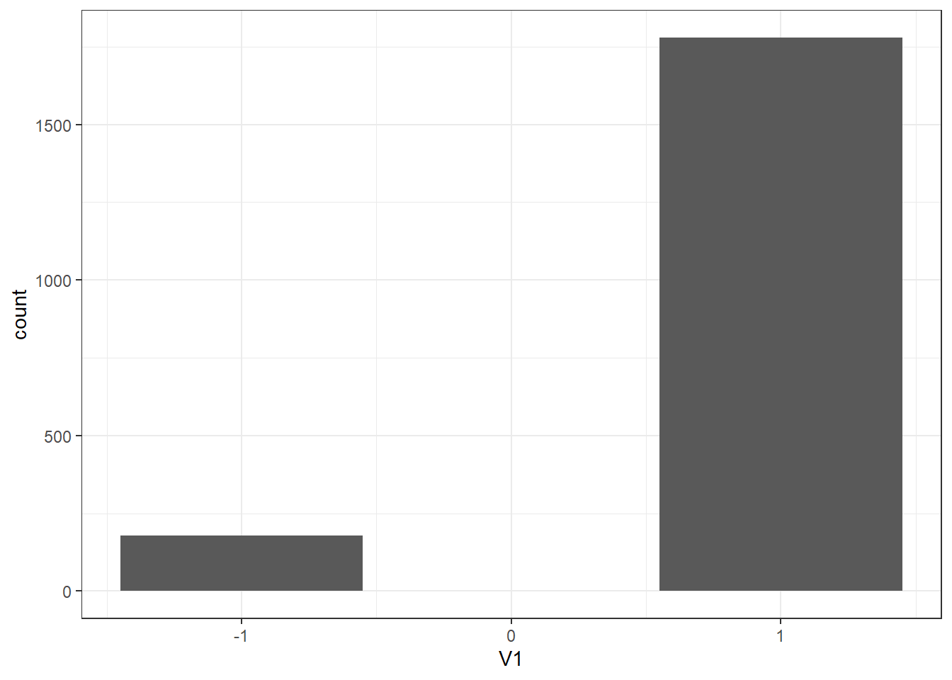 ggplot(return.Picker3, aes(x = V1)) + geom_bar() + theme_bw()